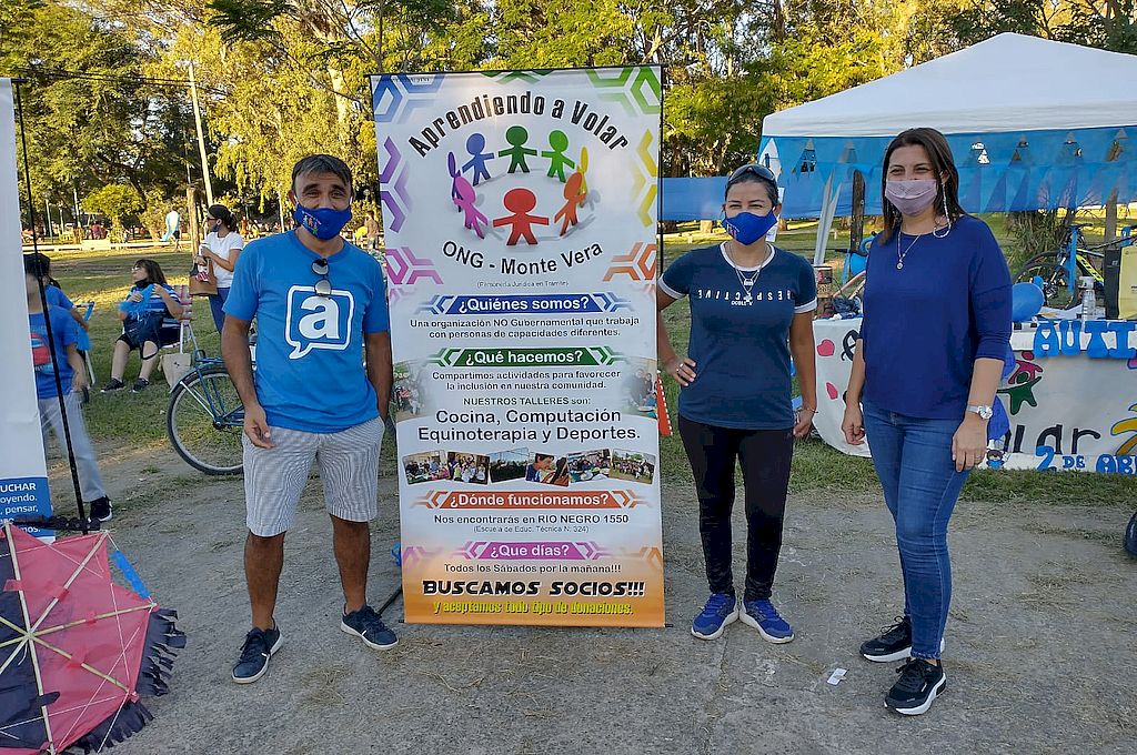 La diputada provincial Betina Florito participó en Monte Vera de Encuentro Azul, jornada de visibilización del Día Mundial de la Concientización sobre Autismo organizada por la asociación civil Aprendiendo a Volar. La actividad, que se llevó a cabo en el Playón de la mencionada localidad del departamento La Capital, consistió en una concurrida "bicicleteada" por las calles de Monte Vera y una "barrileteada" utilizando el azul que es el color con el que se asocia al Autismo. Acompañando a Florito estuvieron también presentes dirigentes de su espacio e integrantes de la ONG Jóvenes Monteverences. "Uno de cada cincuenta niños tiene algún trastorno dentro del espectro autista. Es un trastorno agudo del desarrollo que afecta la capacidad de comunicarse e interactuar socialmente. Afecta al sistema nervioso. Si bien los tratamientos pueden ayudar, el trastorno no tiene cura. Es una condición con la que hay que aprender a vivir y convivir", explicó Florito. "La Organización Mundial de la Salud aceptó incluir las consecuencias de trastornos como el autismo en su nueva Clasificación de Funcionamiento, Discapacidad y Salud aprobada en el año 2001. De esa manera, las personas con estos problemas pueden ser consideradas oficialmente como teniendo una discapacidad y siendo tributarios de todas las acciones compensatorias que una sociedad no discriminadora garantiza a todos sus ciudadanos y ciudadanas", señaló. "Por eso es bienvenida toda actividad que tienda a concientizar a la población sobre este trastorno. De ahí que junto a mi equipo de trabajo consideramos oportuno declarar de interés provincial esta actividad en Monte Vera", agregó la presidente del bloque Somos Vida Santa Fe. Aprendiendo a Volar nació en septiembre de 2012 con el objetivo de generar un espacio de encuentro para todas aquellas personas con o sin discapacidad que quiera participar sin límites de edad para favorecer la inclusión de las personas en la comunidad realizando distintas actividades, que pueden ser: recreativas, de manejo de habilidades sociales, de concientización, y otras.